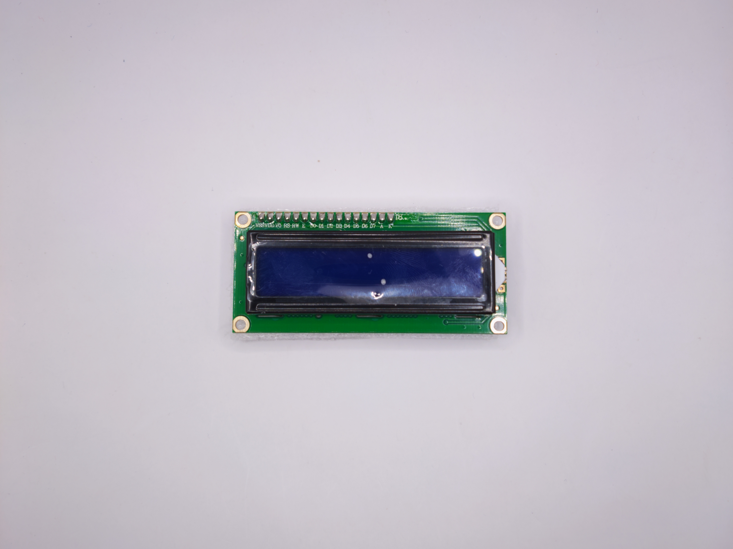 4. Conecta el VD (contraste) de la pantalla al lado negativo de la protoboard.