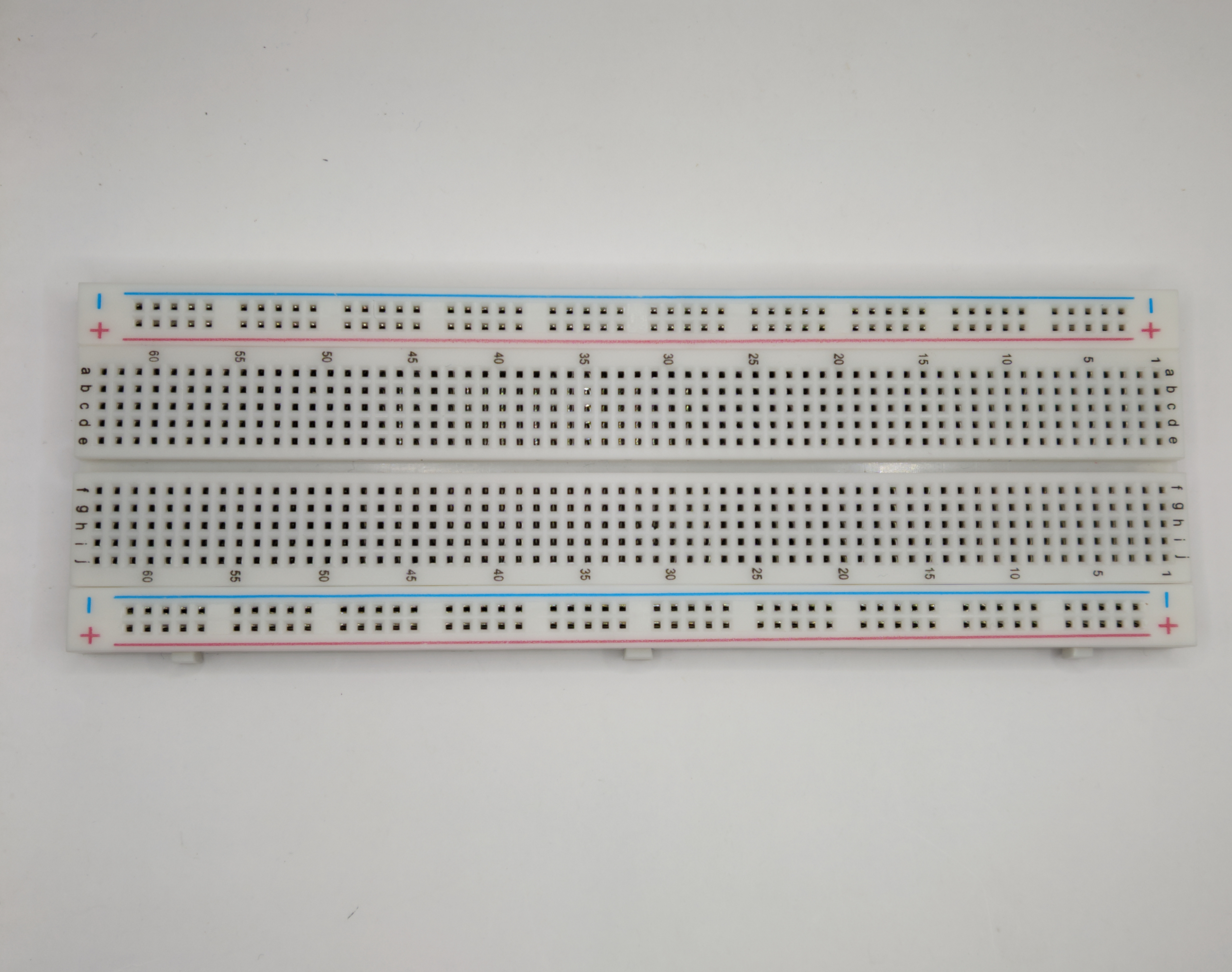 3. Conecta los lados positivo y negativo de la protoboard: conecta los lados negativos (-) entre sí y los lados positivos (+) entre sí.